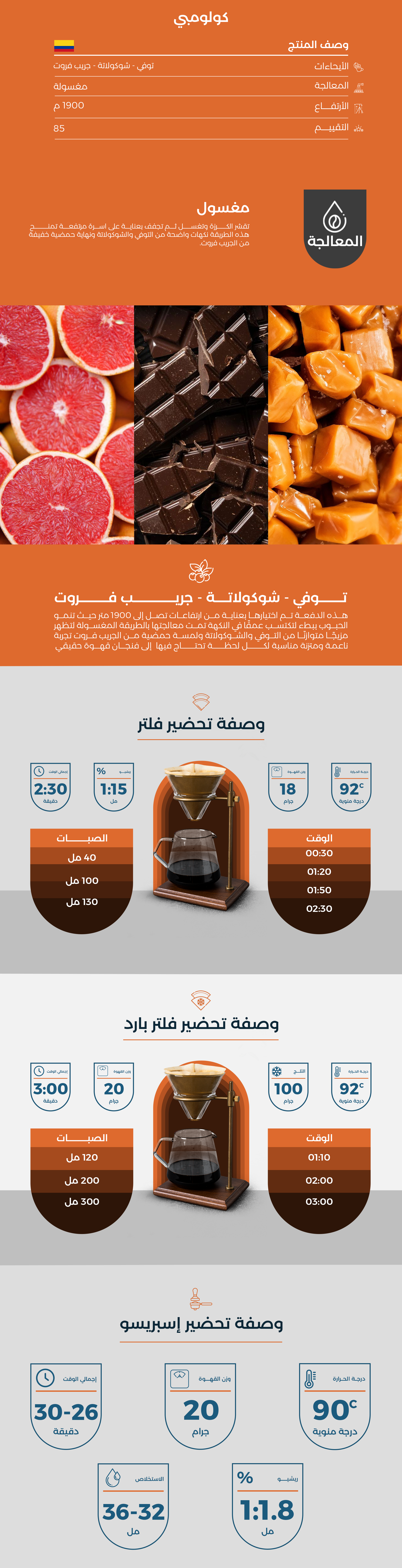 بن كولومبي من The Roastery يُعرف عالميًا بجودته العالية وتوازنه الفريد، حيث تنمو حبوبه في بيئة جبلية مثالية ، ما يمنحها شخصية معقدة وطابعًا مميزًا.