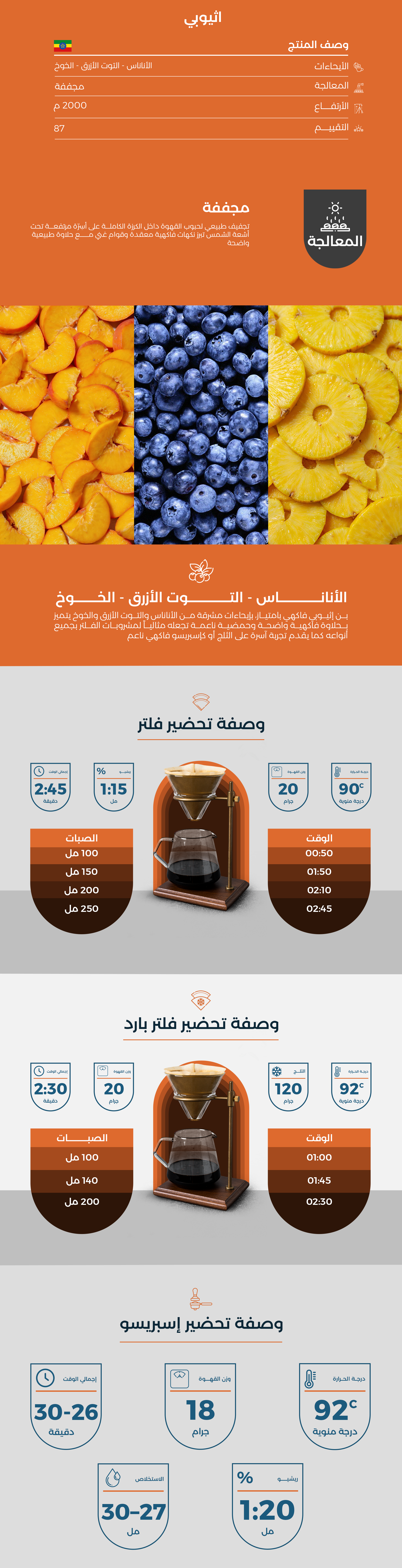 استمتع بتجربة استثنائية مع The roastery قهوة إثيوبية مختصة من أفضل المزارع , تمت معالجتها بالتجفيف الطبيعي تحت أشعة الشمس لتعطي مزيجًا متوازنًا مع قوام غني وحلاوة طبيعية واضحة.